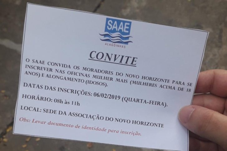 SAAE convida moradores de Novo Horizonte e Alagoinhas IV para inscrições de oficinas 04/02/2019 Leia na íntegra